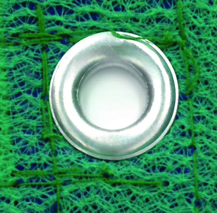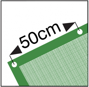 • Afwerking: rondom gestikte zoom, versterkt met PE band en op elke 50cm een aluminium bevestigingsoog, Ø 12mm
