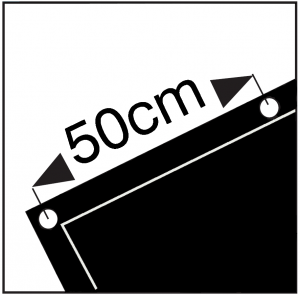 • Afwerking: rondom gelaste zoom met PP koordversterking en op elke 50cm een aluminium bevestigingsoog, binnen Ø 12mm
