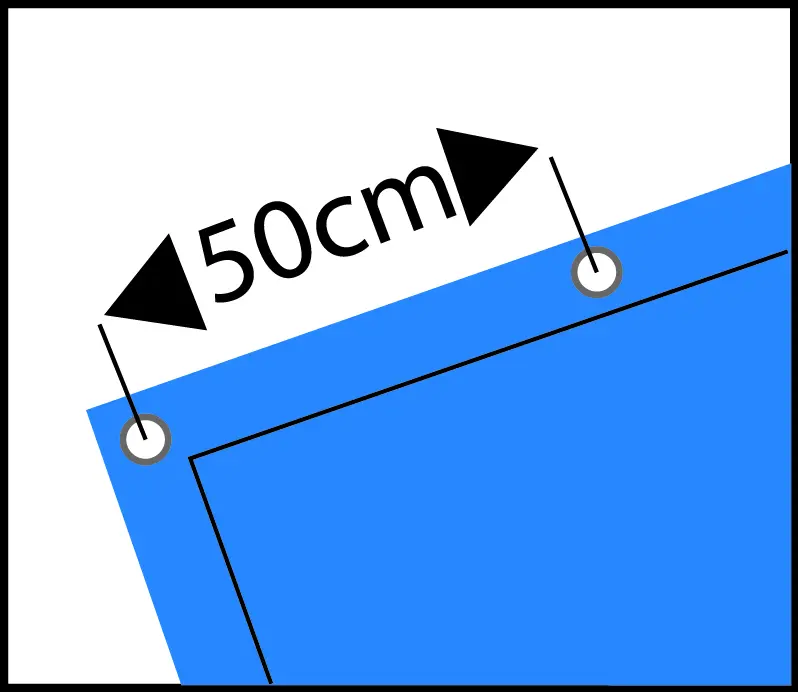 • Afwerking: rondom gelaste zoom met op elke 50cm een messing bevestigingsoog, binnen Ø 18mm